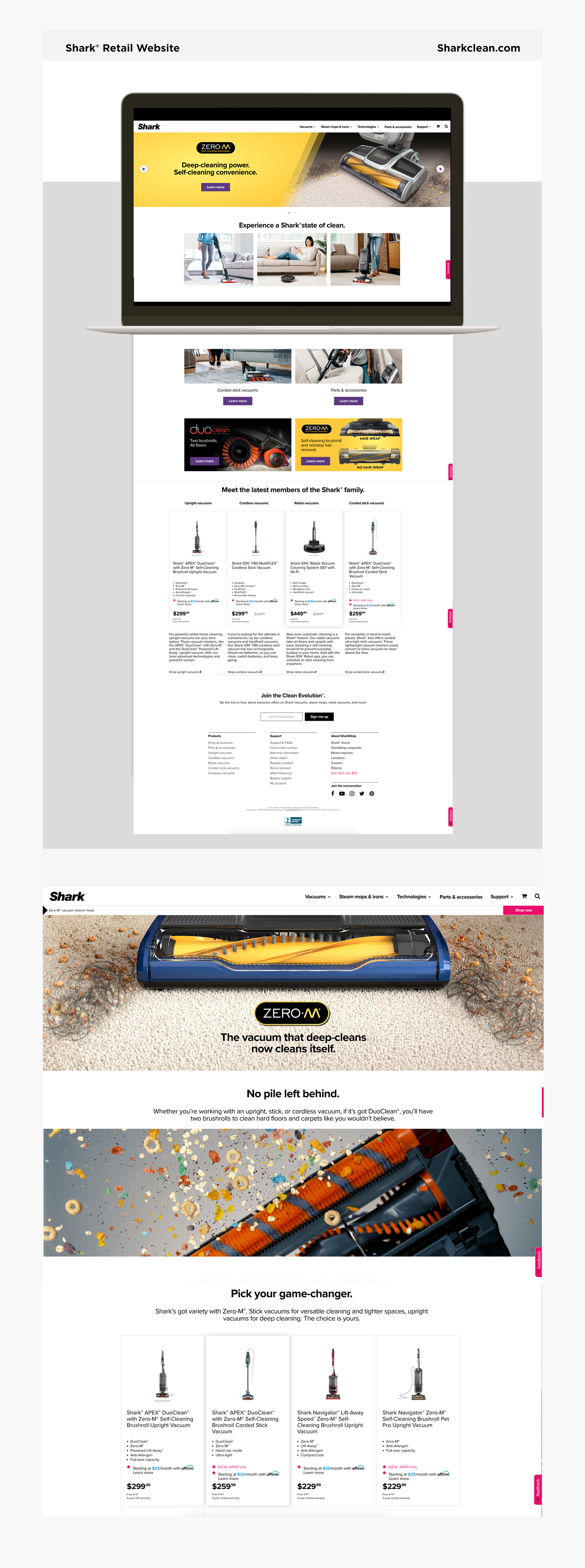 As a Digital Art Director for Shark® I was in charge of the vision for UI and product design across all responsive, mobile-first websites, including CMS integration, international domains, and email marketing for Shark brand.