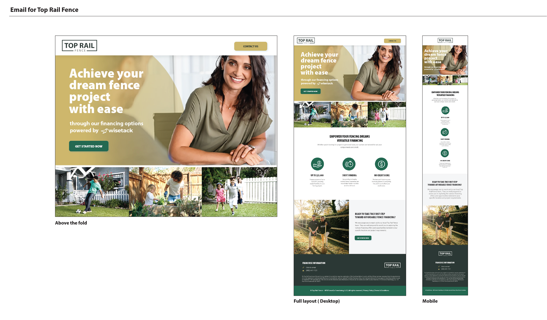 Top Rail Fence is a new franchise from HomeFront Brands. I was asked to create email direction and design ideas for future content campaigns.